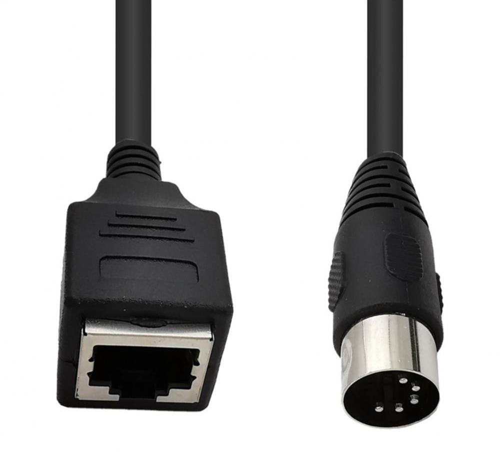 This 5-pin DIN MIDI to RJ45 female adapter cable is designed to carry MIDI data over standard CAT5 / CAT5e / CAT6 Ethernet cables, allowing reliable long-distance MIDI connections at a lower cost than traditional long MIDI cables.