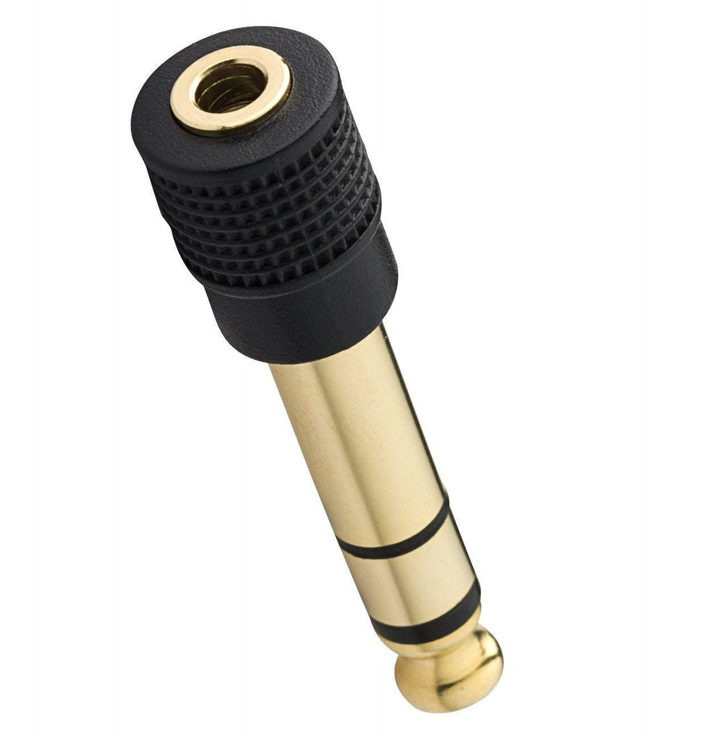 This 6.35mm (1/4 inch) male to 3.5mm (1/8 inch) female stereo audio adapter allows you to connect standard 3.5mm headphones or AUX cables to professional audio equipment with a 6.35mm output. It is ideal for use with guitar amplifiers, mixers, audio interfaces, keyboards, Hi-Fi systems and studio equipment.