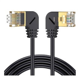 Featuring shielded twisted pair (SFTP) construction with oxygen-free copper conductors, this cable offers excellent protection against crosstalk, electromagnetic interference, and signal degradation. The left-angled RJ45 connectors are ideal for installations where ports are side-facing or space is limited, helping to reduce cable strain and improve cable routing in network racks, wall-mounted devices, and tight enclosures.