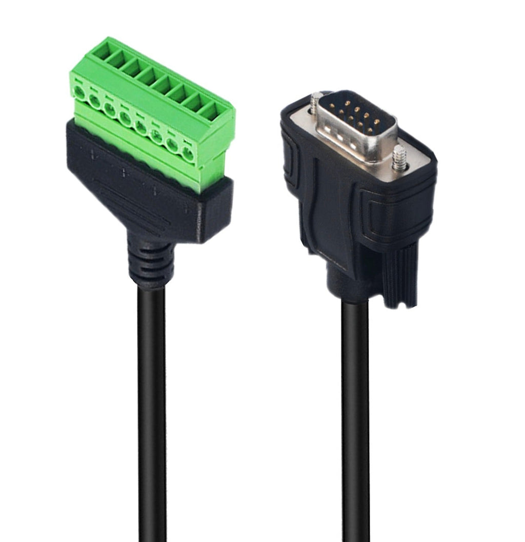 This DB9 RS232 male to 8-pin screw terminal block extension cable is designed for reliable serial communication and custom wiring applications where solder-free connections are required. Featuring a standard DB9 RS232 male connector on one end, it connects directly to computers, controllers, PLCs, modems, and industrial serial devices. The opposite end is fitted with an 8-pin screw terminal block, allowing fast and secure wire termination using only a screwdriver.