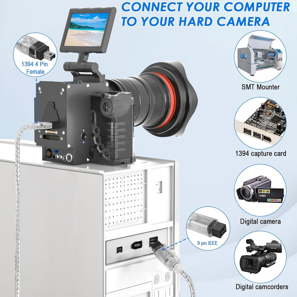 - 9-Pin to 4-Pin FireWire Connectivity - Connects computers, cameras, NAS devices, printers, and external drives via FireWire 400.