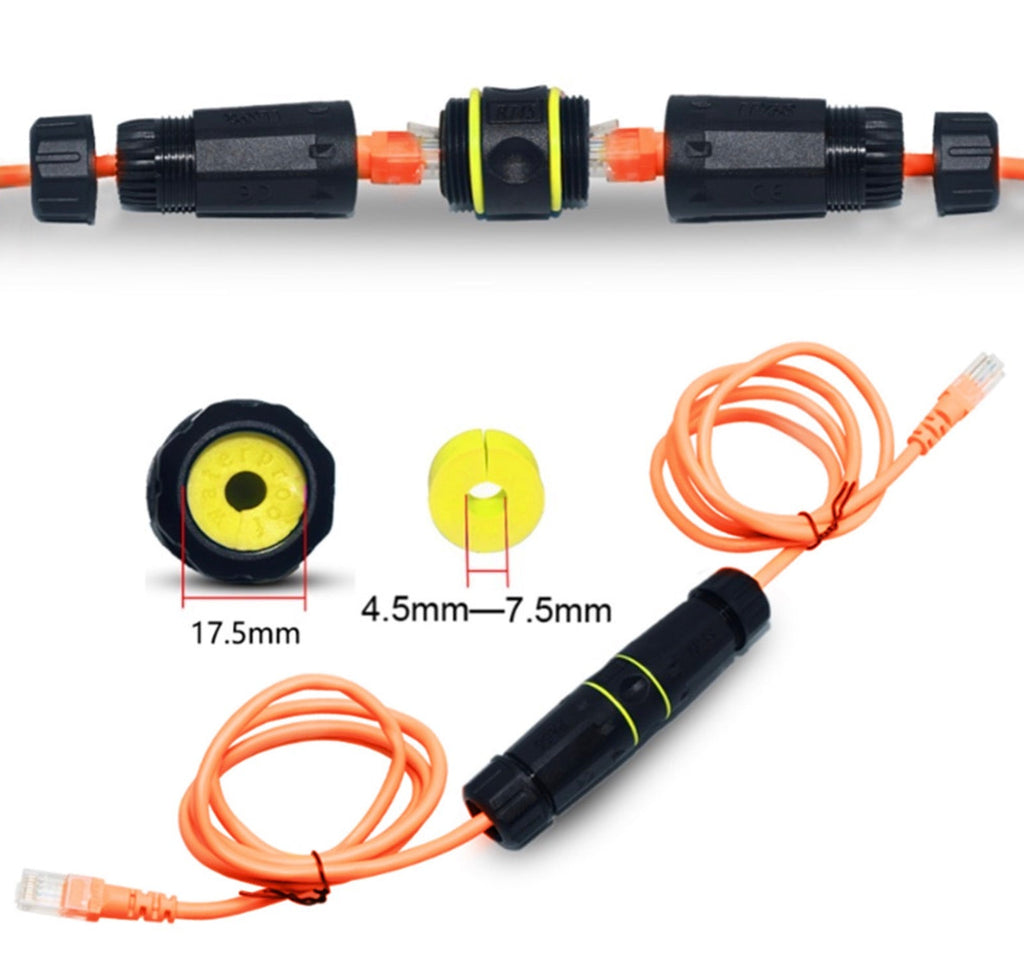 This IP68 outdoor RJ45 network coupler is designed to securely extend Ethernet cable connections in harsh indoor and outdoor environments. It allows two RJ45 patch cables to be joined together while maintaining reliable, high-speed data transmission and full environmental protection.