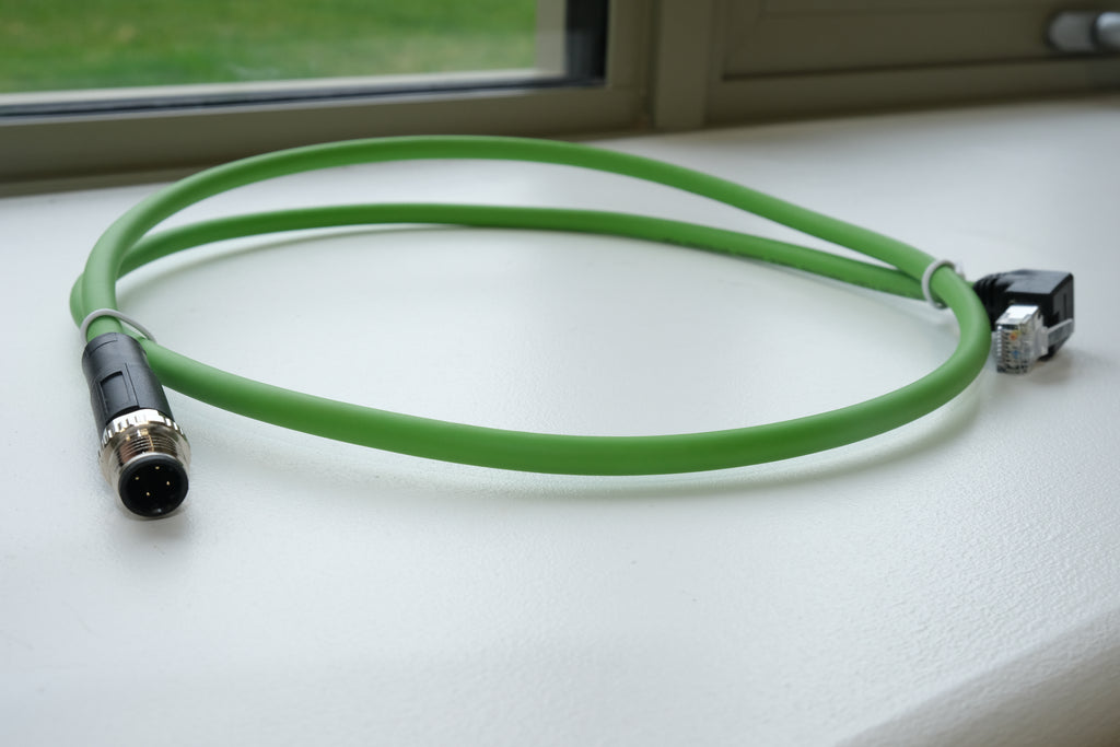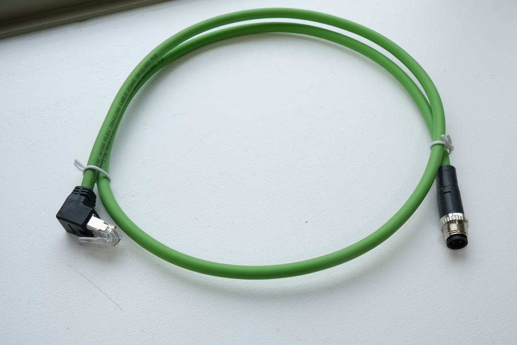 This M12 D-coded male straight to RJ45 up-angle 4-pin Ethernet cable assembly is designed for reliable industrial Ethernet and data transmission in demanding automation environments. The cable supports Ethernet protocols and features full shielding to provide effective EMI protection, ensuring stable and high-integrity signal transmission.