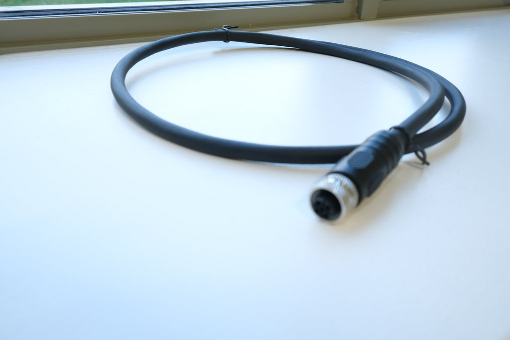 This M12 S-Coded 4 Position (3+PE) Female to Open End cable assembly is engineered for industrial AC power applications requiring secure, high-performance circular connectivity.