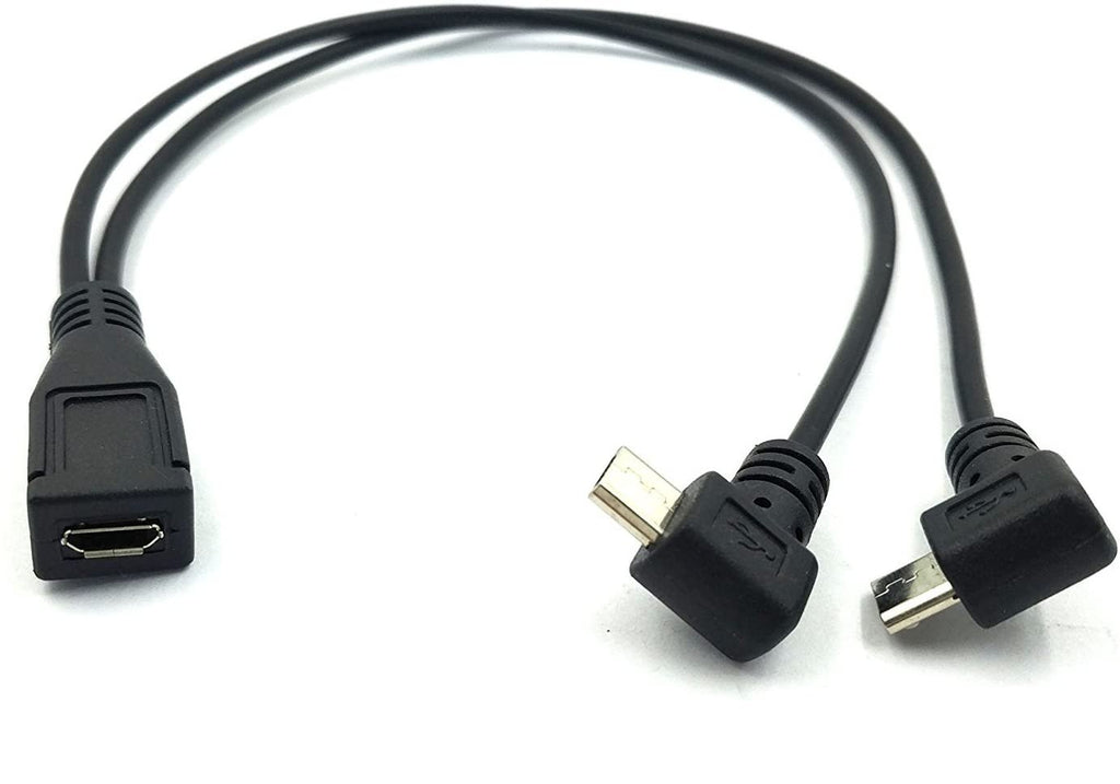 Micro USB Female to Dual Micro USB Male Angled Charging Cable – Y Splitter