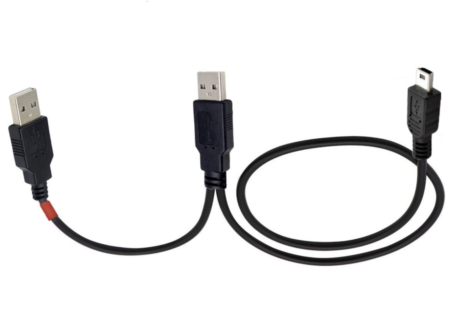 USB 2.0 Mini-B to Dual USB-A Y-Cable - Extra Power for External Devices