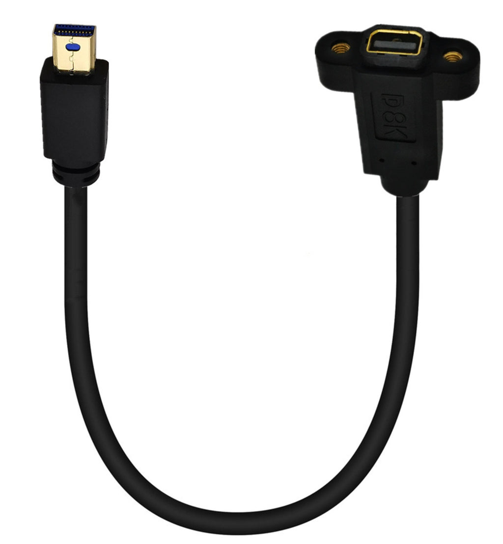 Supporting resolutions up to 8K at 60Hz and high-refresh 4K displays, this cable delivers reliable high-bandwidth video and audio transmission with excellent signal integrity. It is ideal for professional AV installations, workstation setups, control panels, and compact systems where a secure, panel-mounted Mini DisplayPort connection is required.