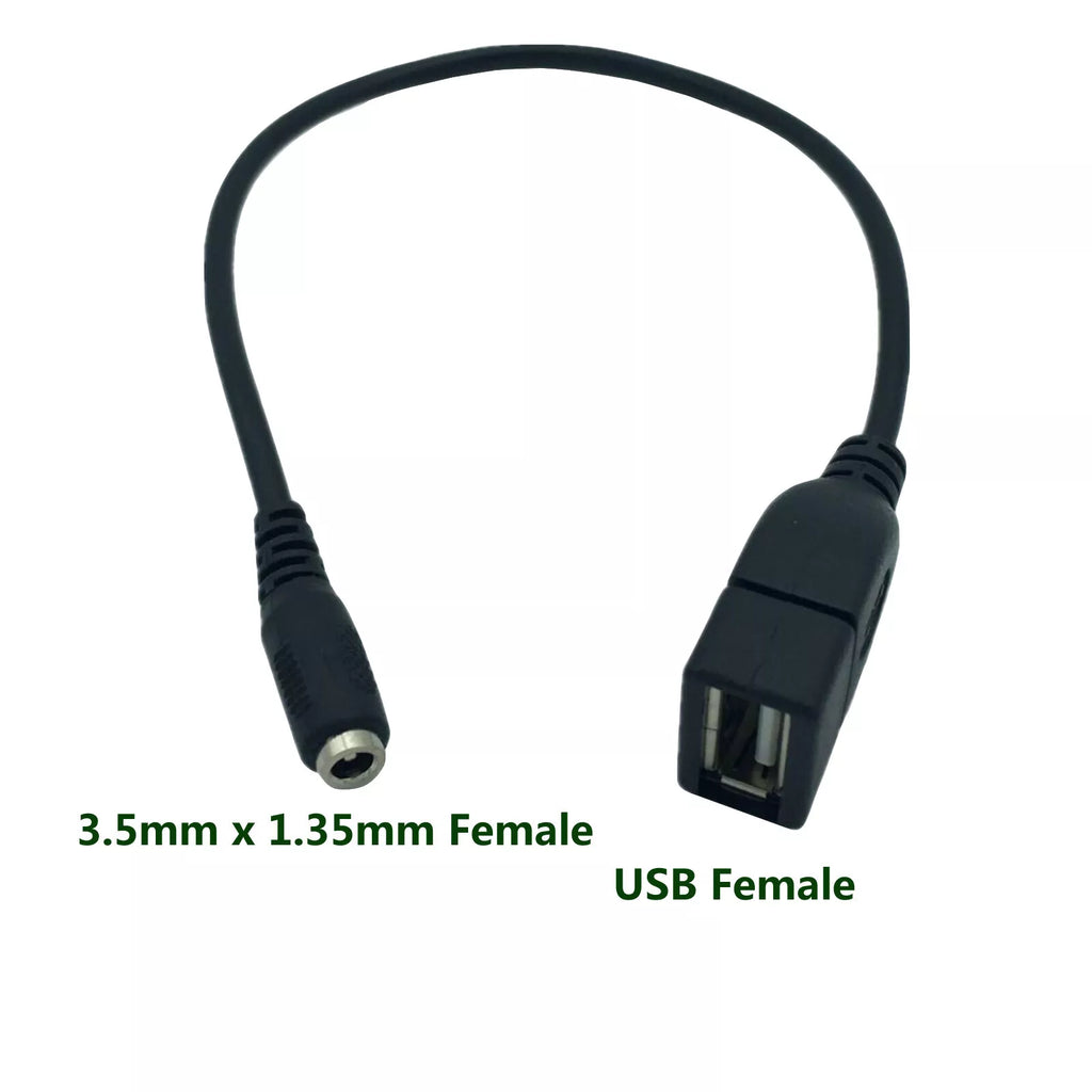 This USB 2.0 A Female to 3.5 x 1.35mm DC power connector cable provides a simple way to power compatible 5V DC devices directly from a standard USB port. It is designed for converting USB power into a 3.5 x 1.35mm DC barrel connection commonly used in small electronics and low-power devices.
