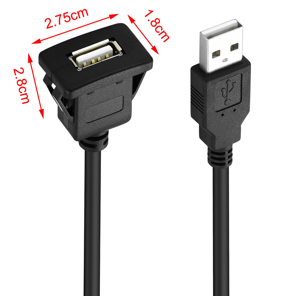 USB 2.0 A Male to Female Flush Mount Panel Cable Shielded For Car Motorcycle 1m