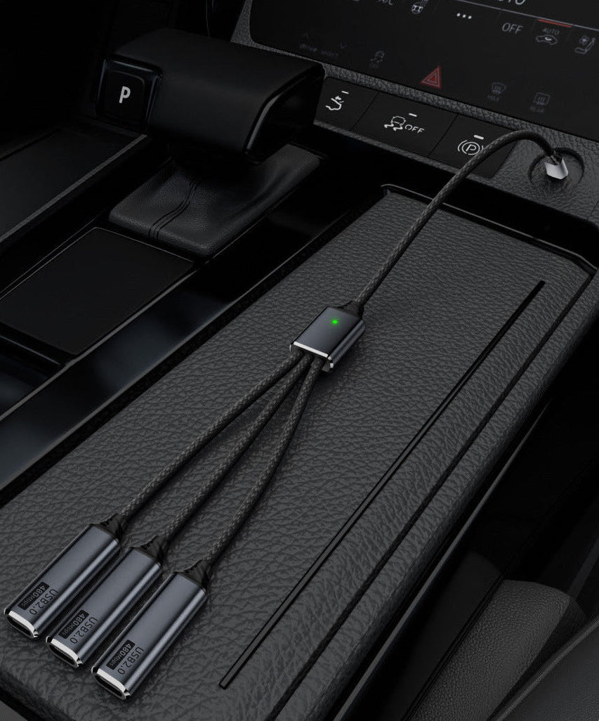 USB 2.0 Type-A to 3-Port Hub Cable - Power, Data & OTG