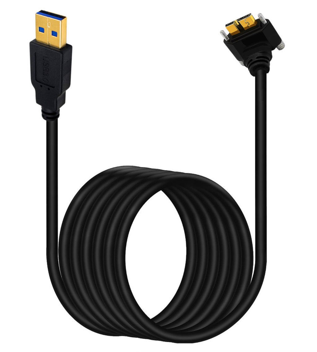 This USB-A 3.0 to Micro-B panel mount cable is designed for secure, high-speed data transfer and charging in industrial, professional, and custom installations. It features a down-angle Micro-B male connector and a panel mount interface with locking screws, allowing a stable and reliable connection in enclosures, control panels, and equipment housings.
