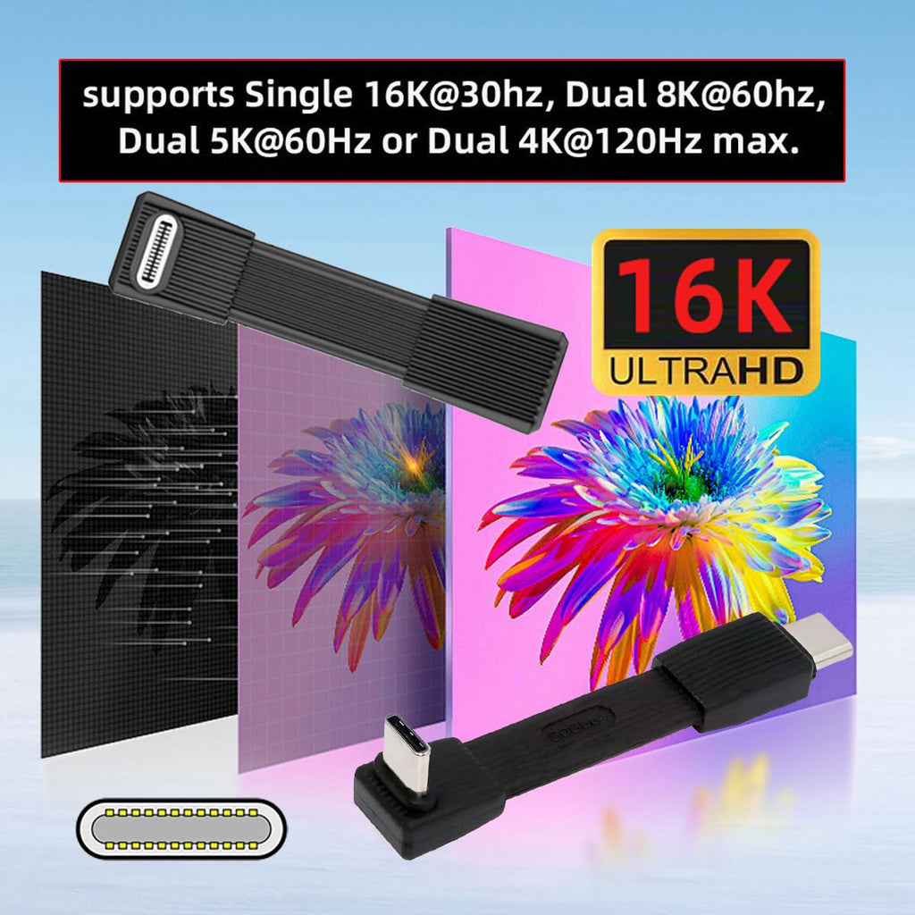 USB‑C 80Gbps 240W Flat Angled Extension Cable — 51 mm, Black