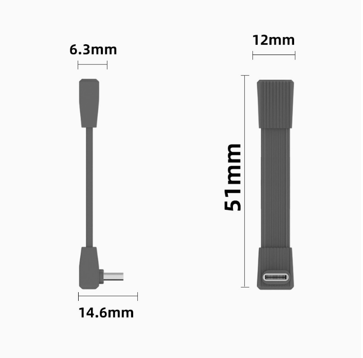 USB‑C 80Gbps 240W Flat Angled Extension Cable — 51 mm, Grey