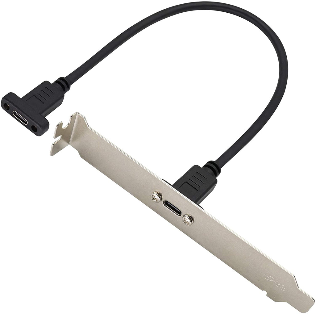 The cable supports high-speed data transfer and power delivery when used with compatible devices and cables. It can be used as a permanent panel-mount extension or as a short linking cable where a robust, fixed USB-C interface is required.