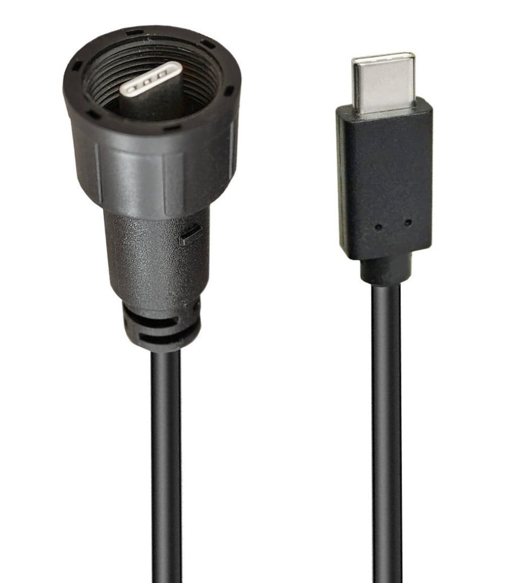 This USB-C male to USB-C male waterproof cable is engineered for demanding industrial, automotive, and outdoor environments where reliable connectivity is critical. Featuring a sealed panel mount connector rated to IP67 (plastic) or IP68 (metal), it provides excellent protection against water, dust, vibration, and environmental exposure.