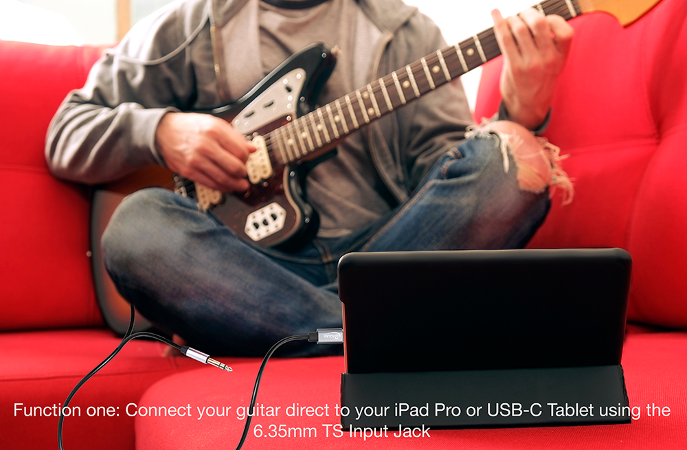 • Typical use cases: guitar to iPad recording, tablet to amp playback, laptop to mixer.