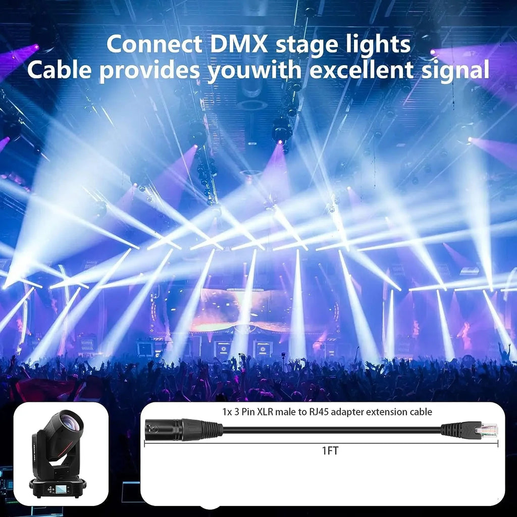 Extend your DMX lighting network with this XLR 3-Pin Male to RJ45 CAT5 Male Extension Cable, designed to convert standard Ethernet cabling into reliable DMX512 signal transmission. Ideal for stage lighting, live events, studios, and fixed installations, this adapter allows longer cable runs using widely available CAT5/CAT5e network cables.